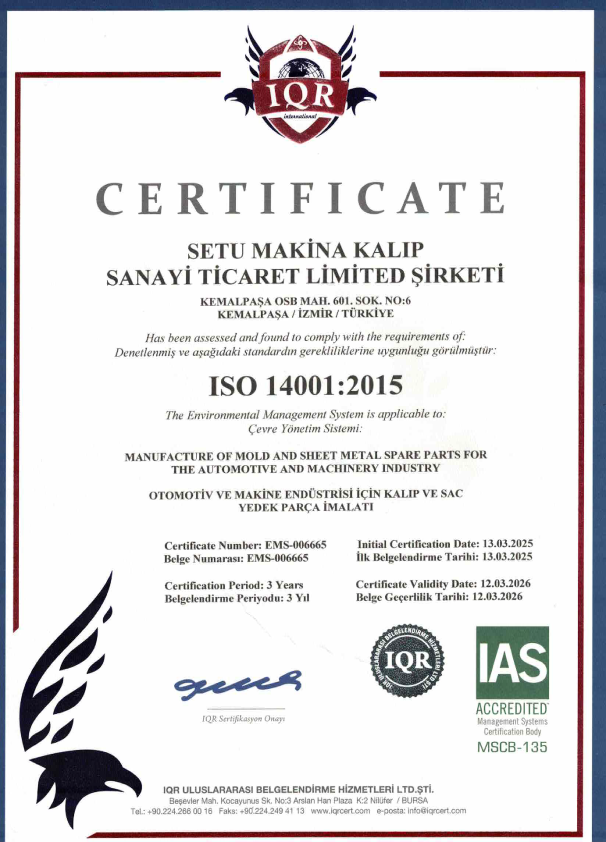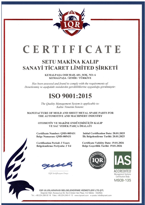 Deneyimli kadrosu ve teknolojik makina parkuru ile prograsif kalıplar, metal form verme, kesme, bükme ve sıvama kalıpları, laminasyon kalıpları ve alüminyum trim kalıp üretimi ve Pres baskı seri üretimi yapmaktadır. Otomotiv,beyaz eşya,elektrik-elektronik,ısıtma-soğutma,makina,inşaat,yapı malzemeleri sektörleri ve armatür,batarya parçaları ve aksesuar grupları gibi sıhhi tesisat elemanları üreten sektörünün öncü firmalarına uzun yıllardır hizmet veren Setu Makine Kalıp kendi sektöründe kalıp üretimi ve Pres baskı seri imalatı konusunda güven sahibi olmuştur. Gelen talepler eşliğinde bir çok firmaya da Tel Erezyon konusunda da çözüm ortağı olarak hizmet vermektedir.